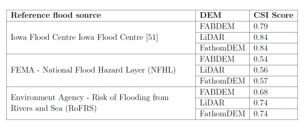 DEMs are an important input to flood inundation mapping; how can you determine flow paths without an accurate representation of the terrain? To measure the applicability of FathomDEM, it was used in Fathom’s Global Flood Map and the results analyzed against three reference flood maps. The results were then evaluated against variants using FABDEM and LiDAR.