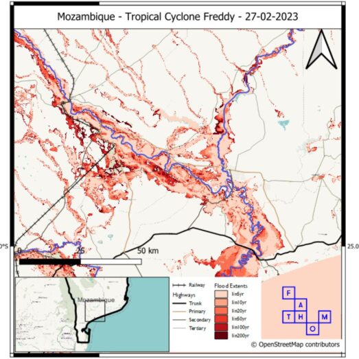 To create the event’s pluvial map, IF compiled pre-calculated pluvial hazard (from Fathom) for 24 hour rainfall return periods.